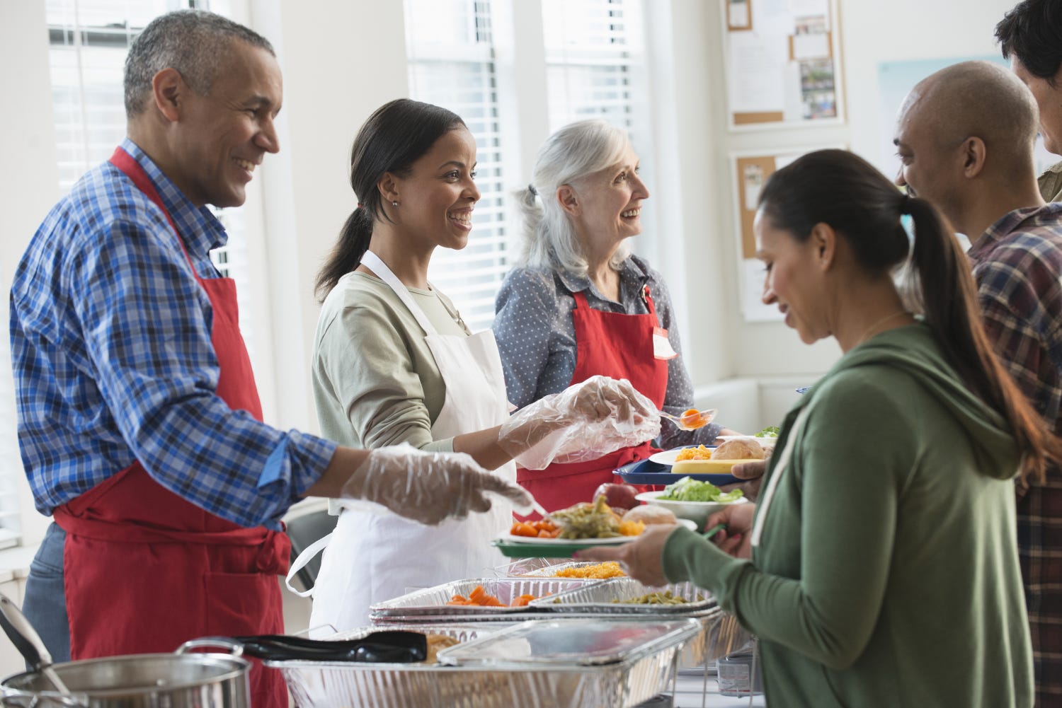 Volunteers serving food